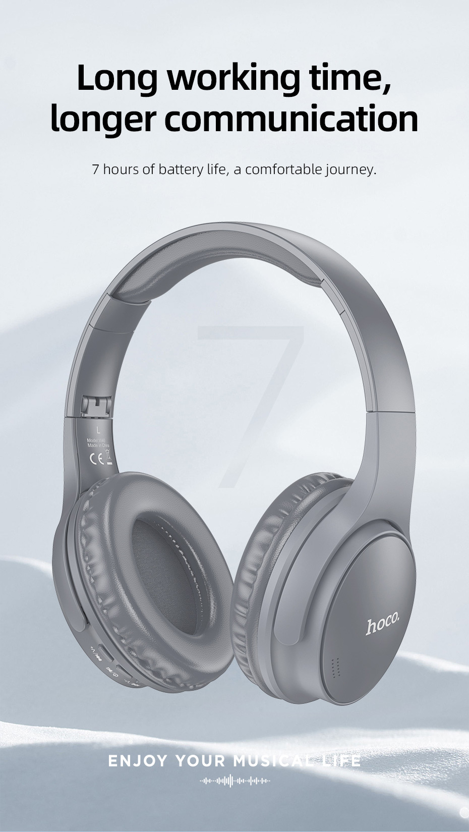 Hoco W40 Mighty Bluetooth оснащений акумулятором ємністю 200 мАг, заряду якого вистачить на 7 годин автономної роботи або 120 годин у режимі очікування.